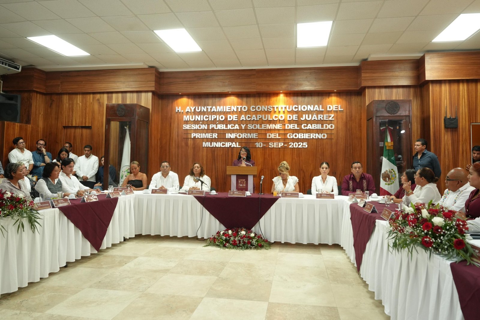 En sesión pública y solemne en la sala de cabildo, la presidenta municipal de Acapulco, Abelina López Rodríguez, presentó su primer informe de gobierno correspondiente a su segundo período como alcaldesa, en el que destacó avances en materia financiera, de obra pública, seguridad, turismo y combate a la corrupción.