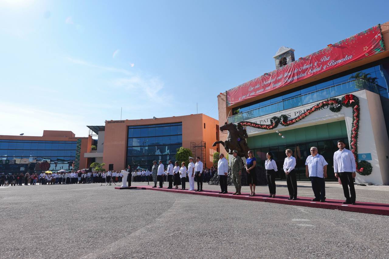 En la última ceremonia cívica de homenaje e izamiento de Bandera correspondiente a este año, la gobernadora Evelyn Salgado Pineda hizo un llamado a fortalecer el trabajo colectivo para consolidar un Guerrero más justo, próspero y humano. Durante el acto, la mandataria reconoció la labor de la base trabajadora, subrayando que su compromiso ha sido determinante para los avances alcanzados a lo largo de 2025.