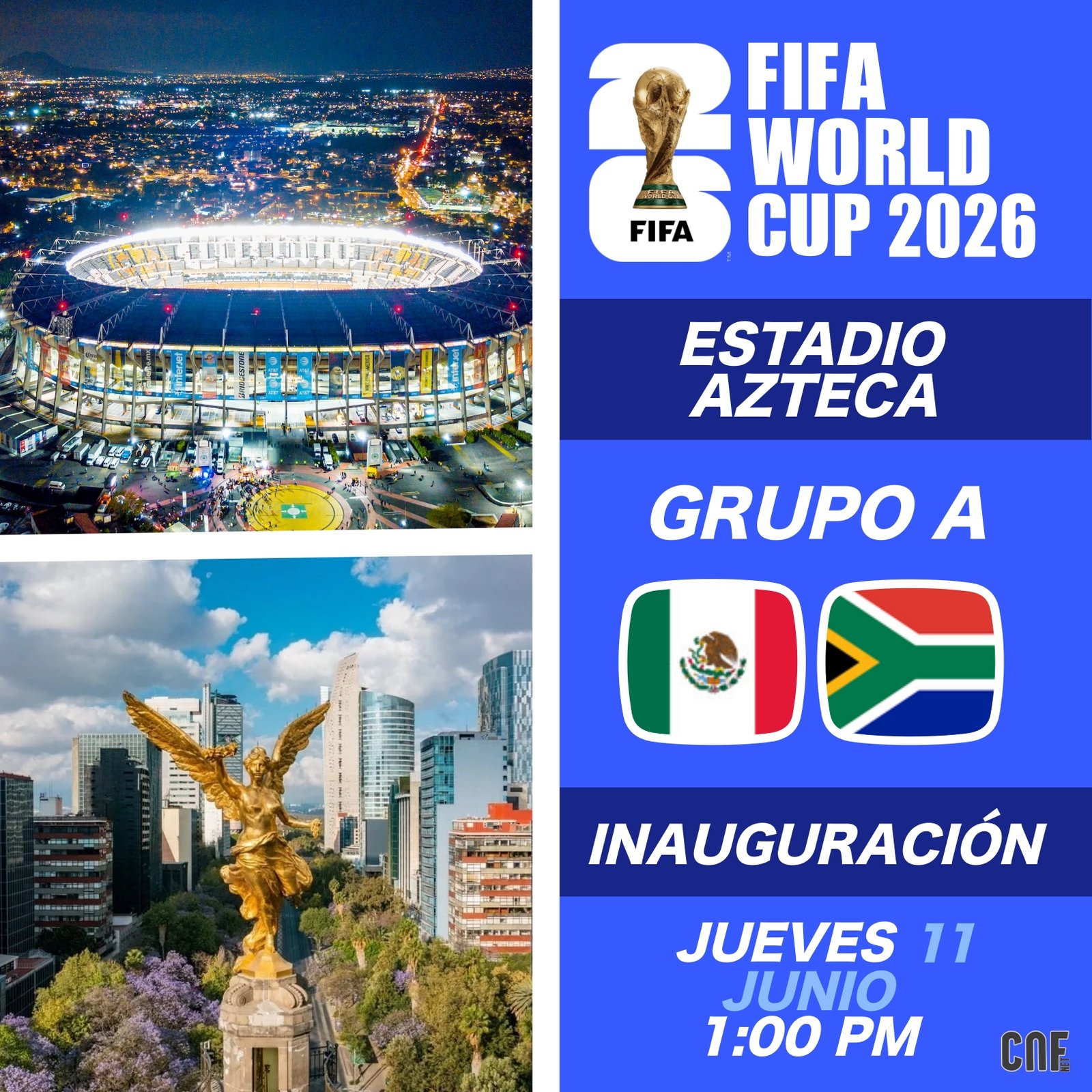 El cuadro mexicano jugará el partido inaugural del torneo el 11 de junio en la cancha del estadio Azteca frente a su similar de Sudáfrica.