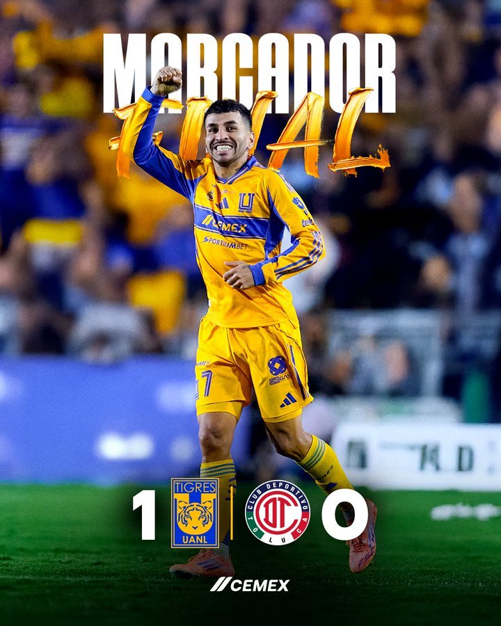 Tigres dio el primer paso hacia el título del Apertura 2025 al derrotar 1-0 a Toluca en el juego de ida de la Gran Final, disputado en el estadio Universitario. El conjunto felino supo aprovechar los momentos clave del encuentro para marcharse con ventaja de cara al duelo definitivo.